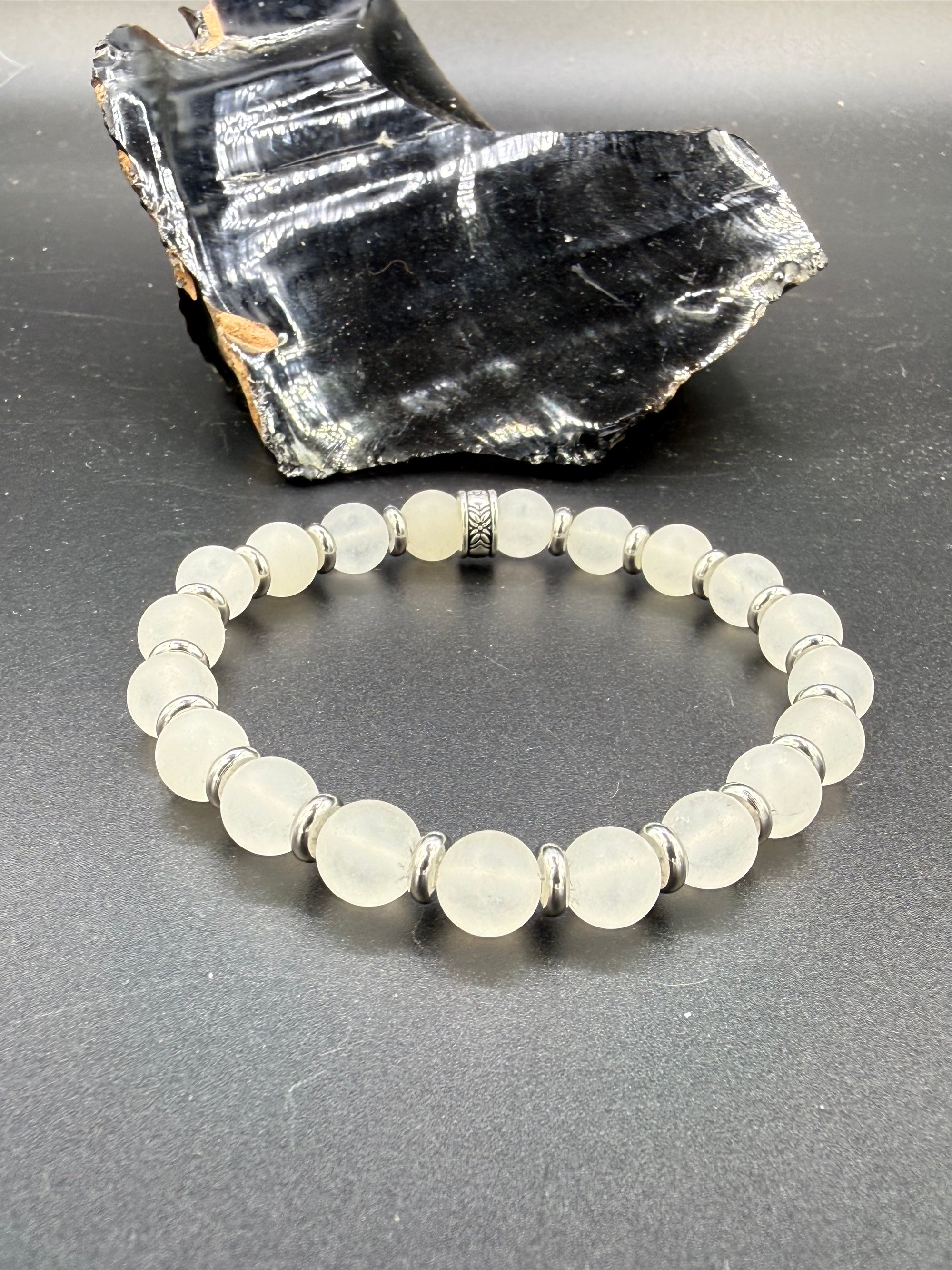 All bracelets are handmade by me, never purchased. They are made with nickel free findings, and strung on a sturdy 1 mm stretch cord, secured by three surgeons knots.