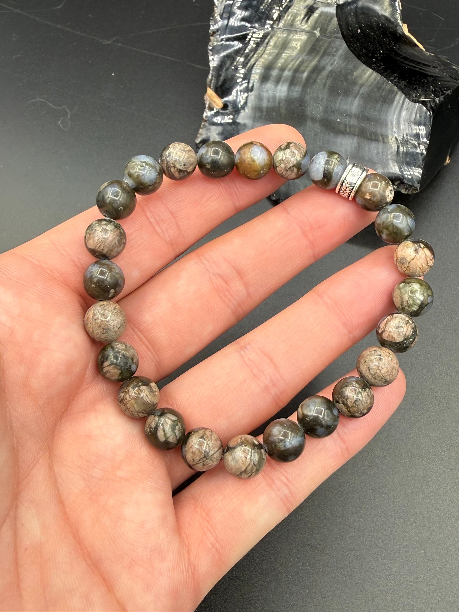 If you are into metaphysics, this is a high-vibrational stone especially since it is comprised of so many materials. It assists in overcoming self-imposed limitations, encourages saying "no," and fosters a "good times only" mindset. It is ideal for enhancing intuition and spiritual growth, particularly stimulating the Third Eye and Throat chakras.