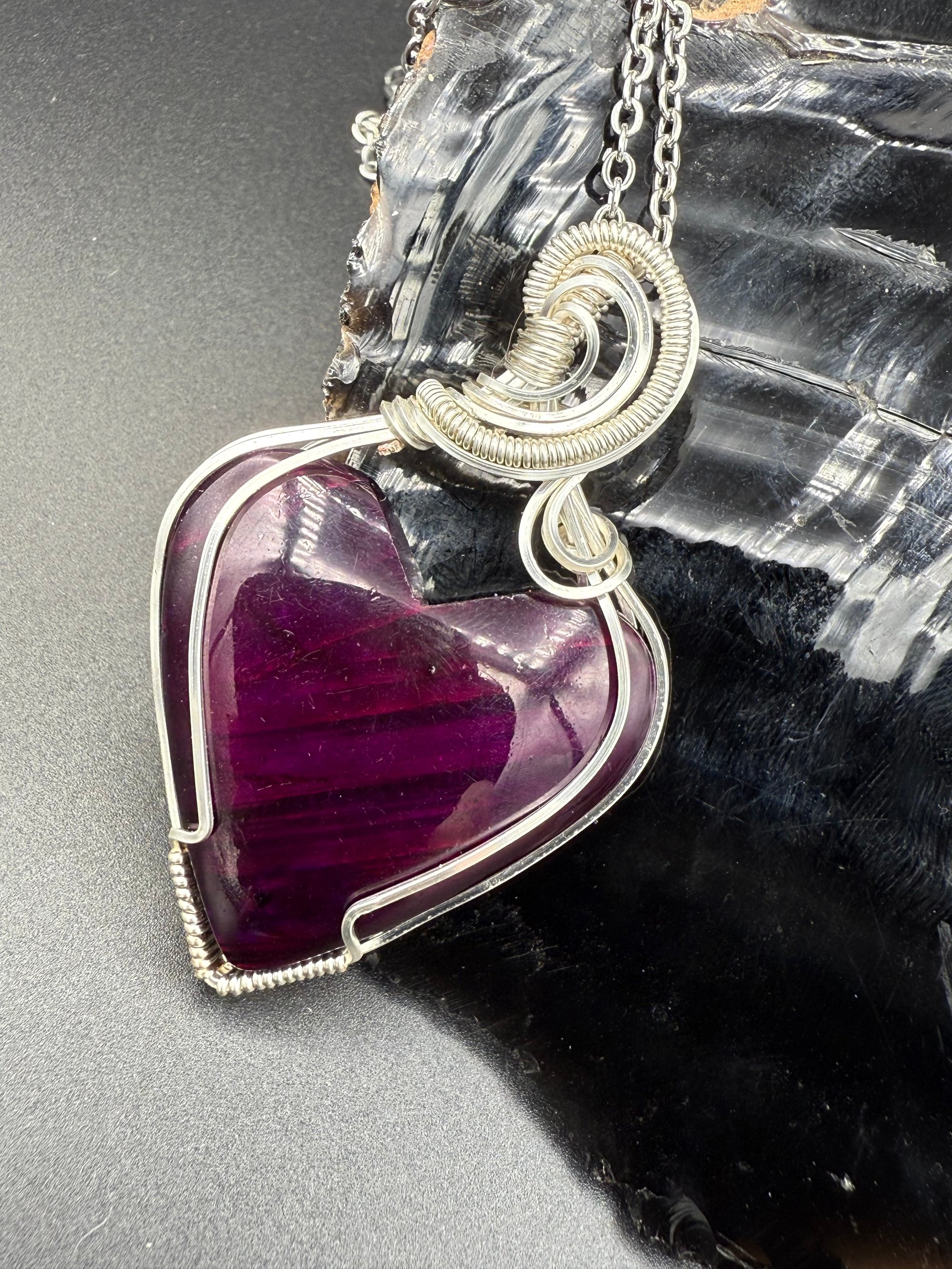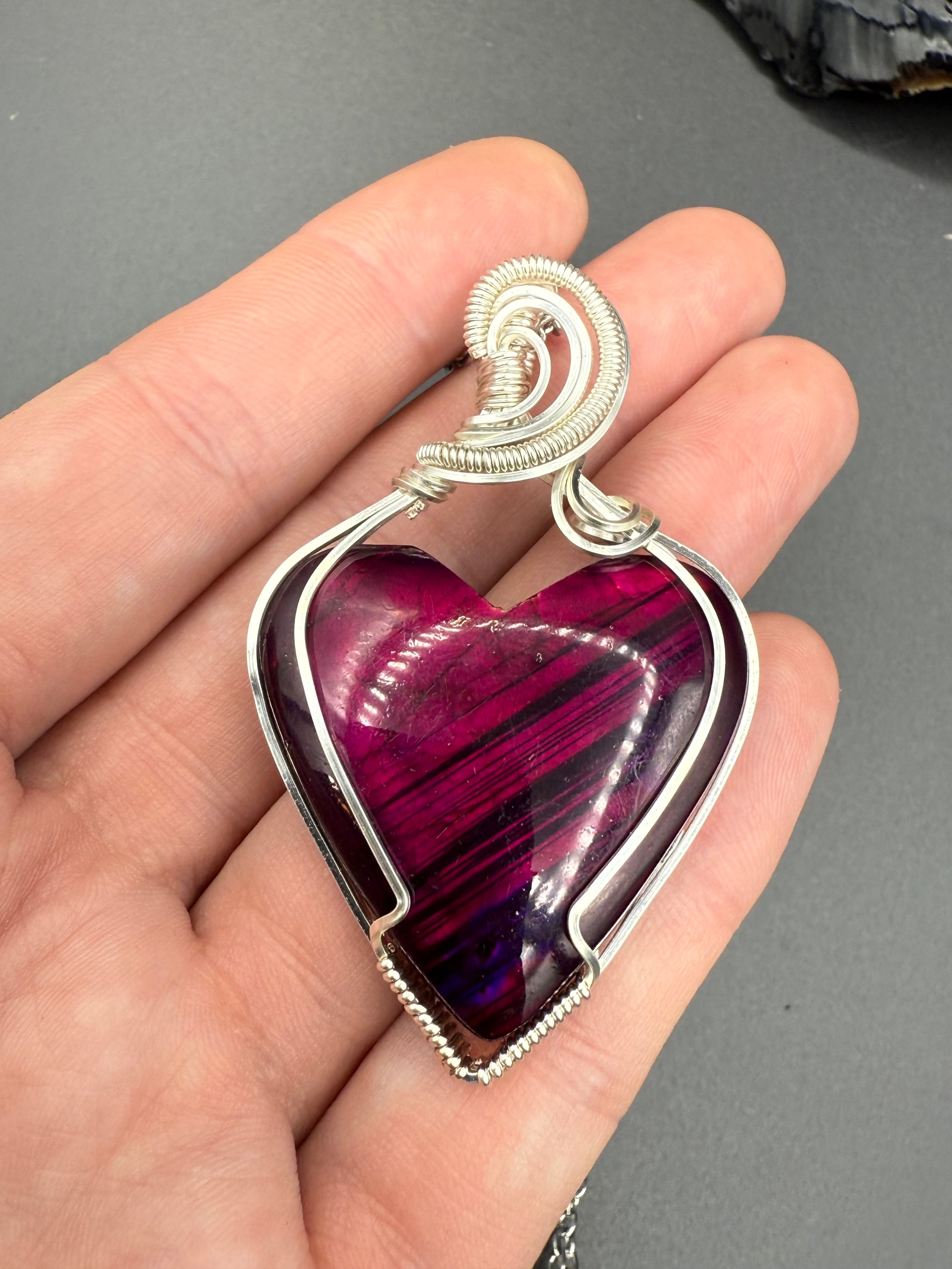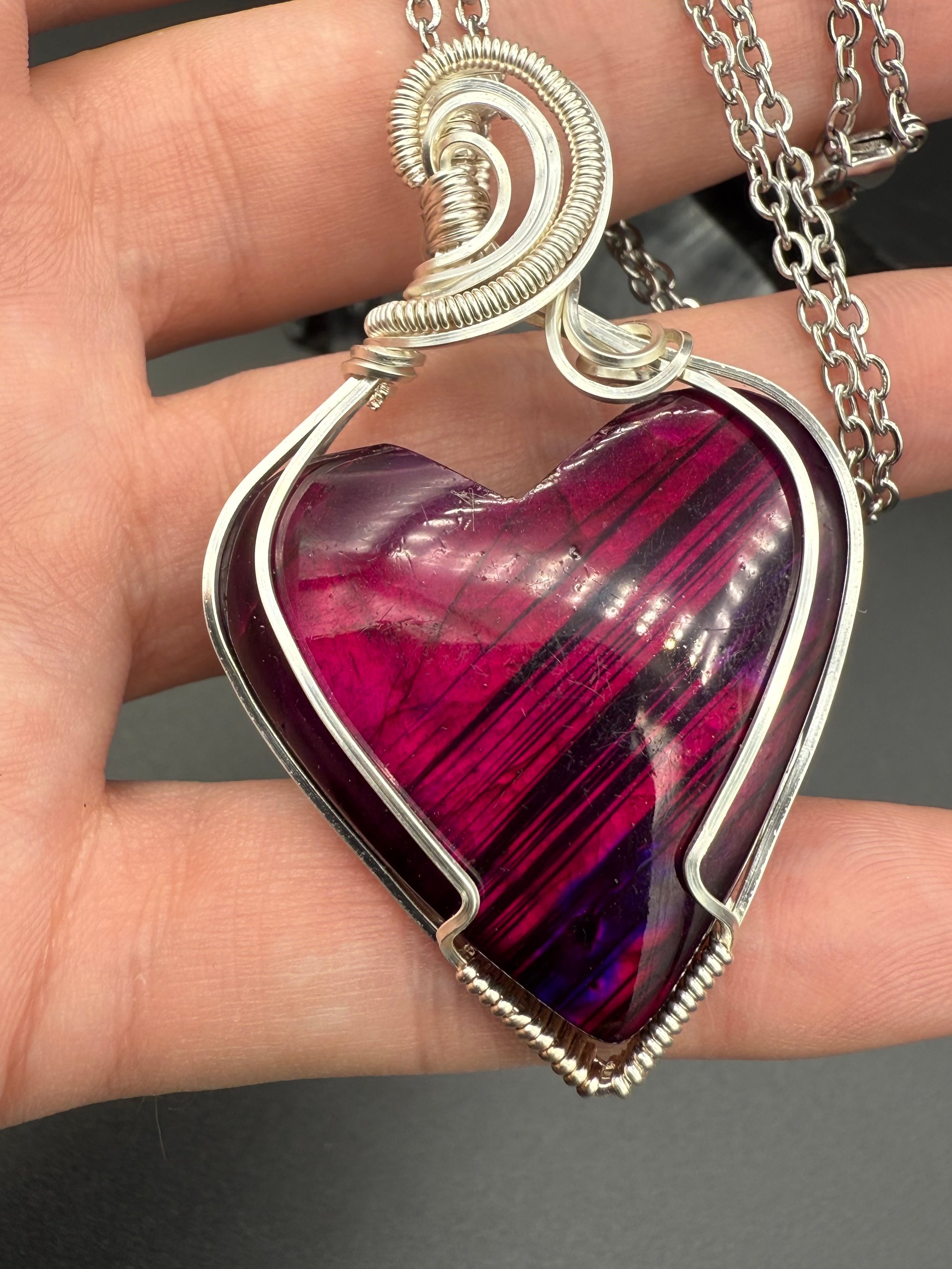 Here we have another one of the coated lab hearts. This is a natural flashy lab that has been coated with a coloring to make it this beautiful pinkish purple. I don't typically buy colored or otherwise altered cabochons, but just look at it. It's gorgeous! This one is pretty big, too. They are even more impressive in the sunlight.