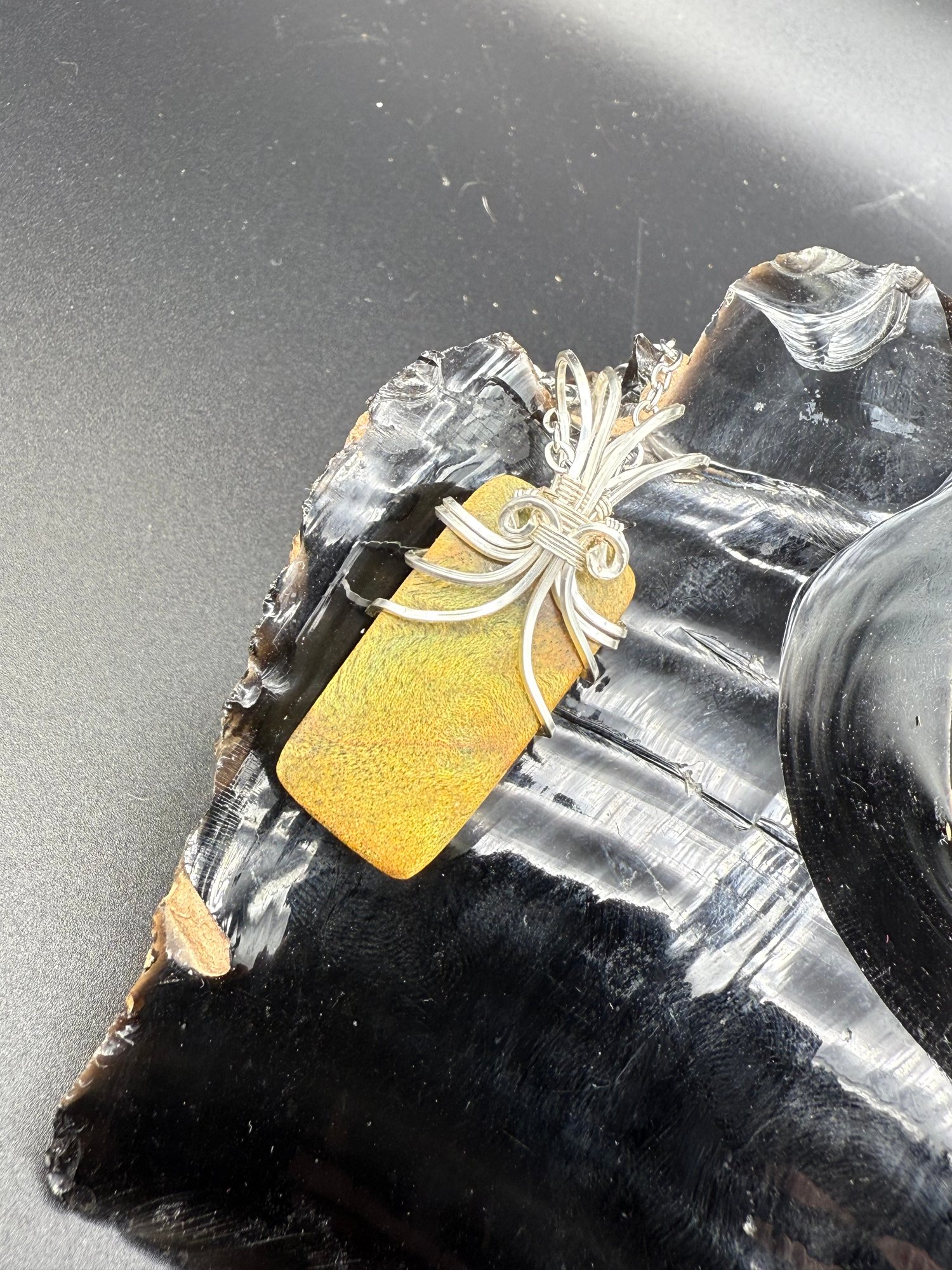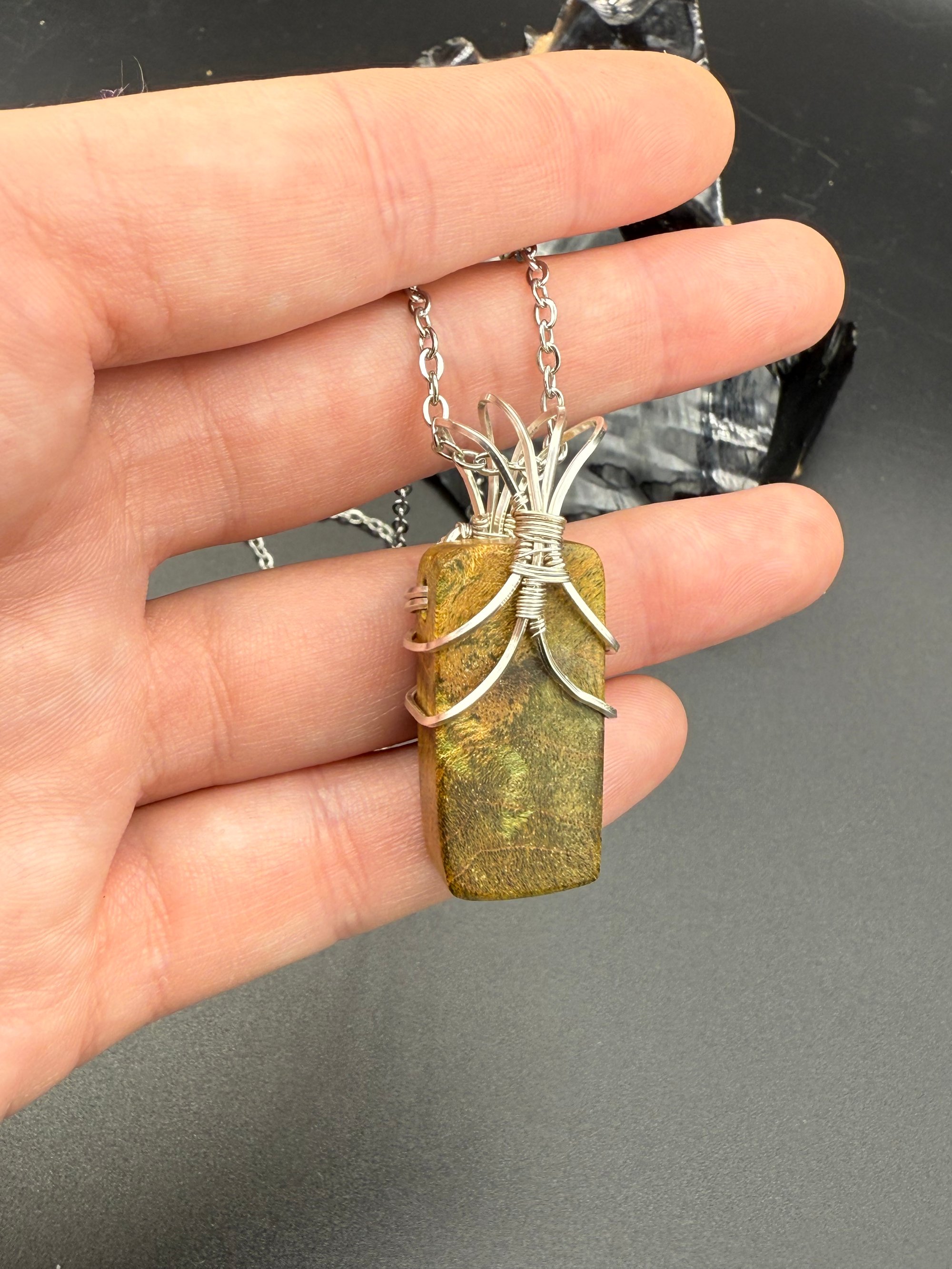 Here we have a really special pendant. This is a piece of wood burl I received from a dear friend of mine who makes really cool wood pens. He uses a special process to stabilize the wood and make them into really cool items. He is Squatchworks on Etsy, and you should definitely check him out!